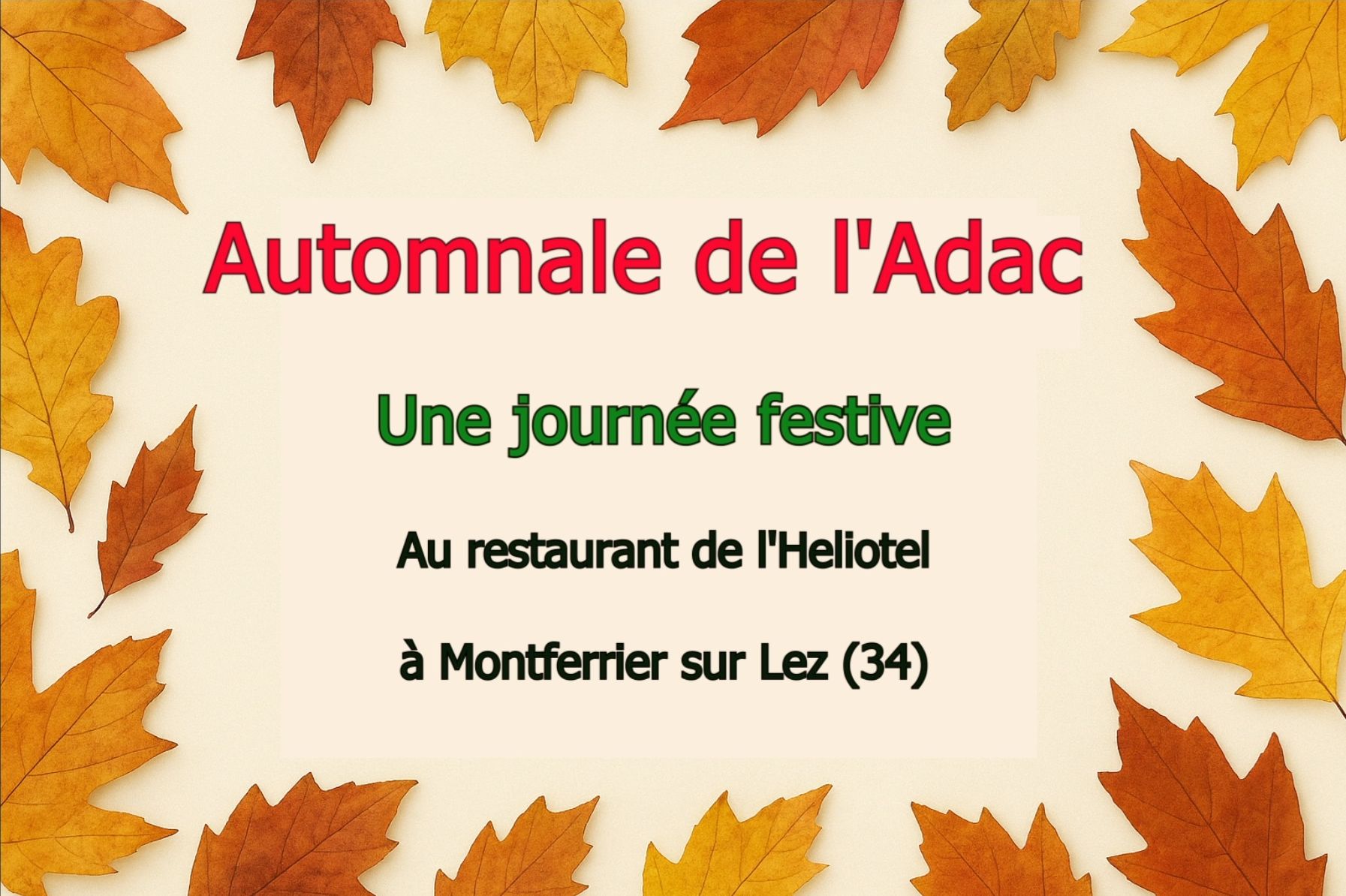 Les 9 novembre 2023, l'Adac a réuni une cinquantaine de ses membres et sympathisants pour fêter ses 20 ans, à l'occasion de l'automnale 2023. L'évènement a permis de faire un retour historique la vie de l'Adac depuis sa création (en 2003) avec la contribution de ses trois successifs présidents (JC Keslacy, JP Gaillard et J Chantereau) illustrée d'un diaporama. Au cours de la journée, un magicien : Michel Daix intervient plusieurs fois pour nous surprendre et captiver par ses tours. il y a aussi des moments de convivialité avec l'apéritif et le repas, des jeux (quiz) et une distribution humoristique de prix. Venez en découvrir (ou redécouvrir) les principales animations en cliquant sur les liens ci-dessous.